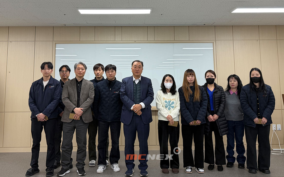 또한, 회사의 역사를 함께 써 내려온 **장기근속 포상(20년 2명, 10년 15명, 5년 17명)**을 통해 임직원들의 자긍심을 고취했습니다. 민동욱 대표는 수상자 한 명 한 명에게 직접 시상하며, 구성원의 성장이 곧 엠씨넥스의 경쟁력임을 다시 한번 확인했습니다.