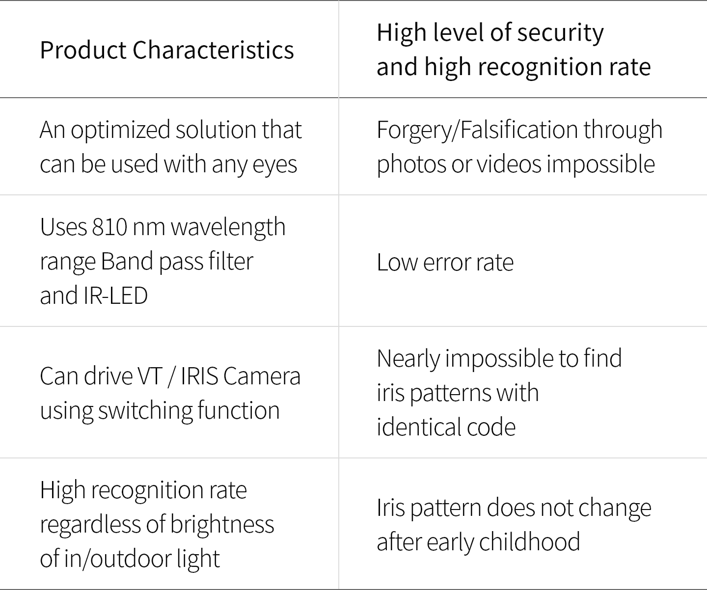 FINGERPRINT SENSING. FACIAL RECOGNITION SYSTEM. IRIS CAMERA.